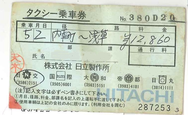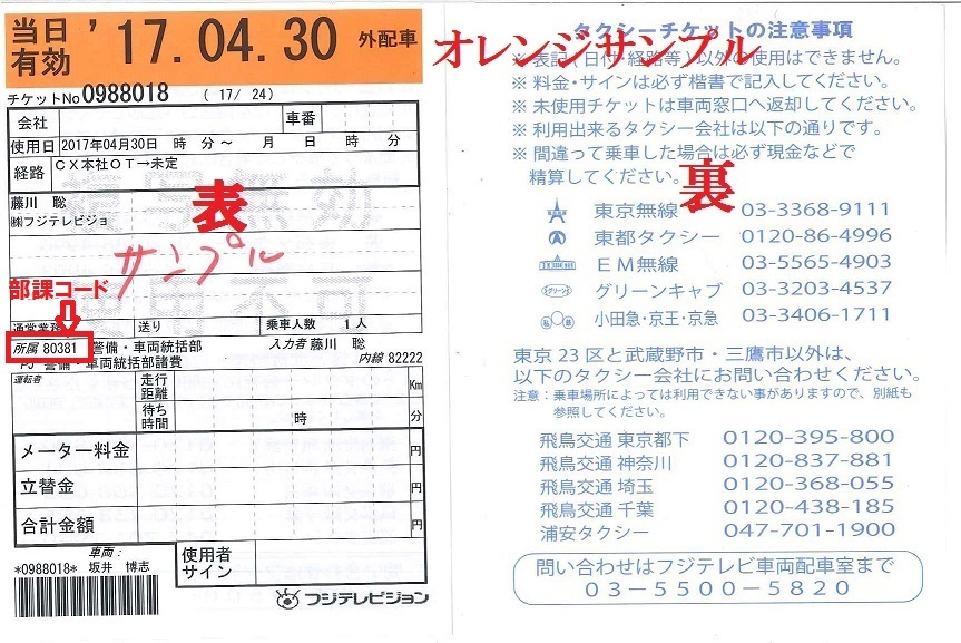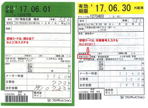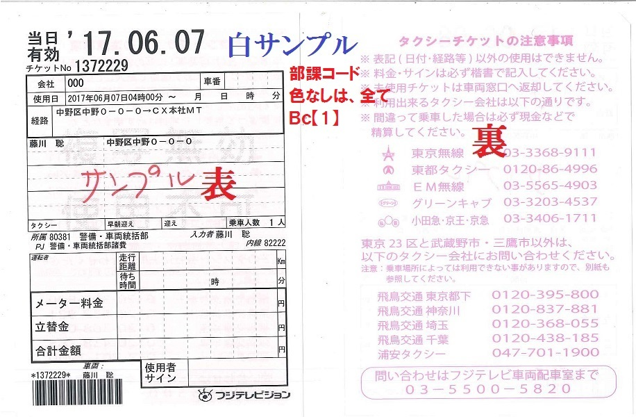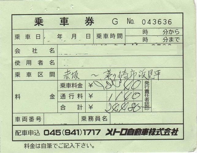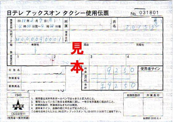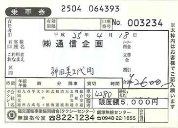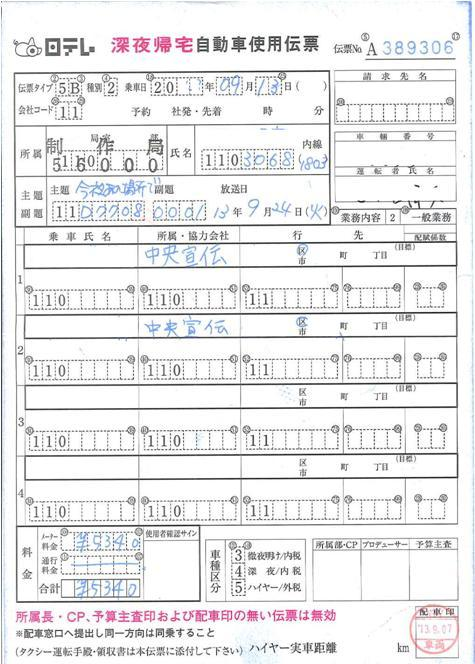 通:ハイヤー利用伝票 |