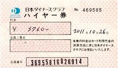 日本ダイナースクラブ ハイヤー券 |