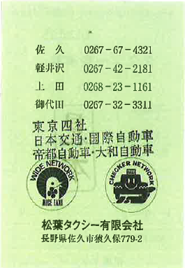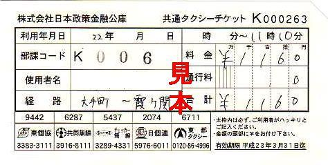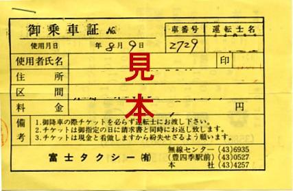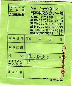 日本タクシー御乗車券 |