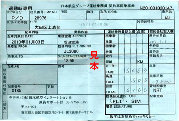 日本航空G運航乗務員契約車両乗車券 |