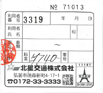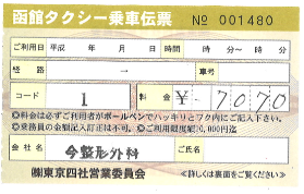 函館タクシー乗車伝票 |
