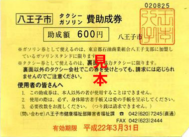 八王子市タクシーガソリン費助成券 |