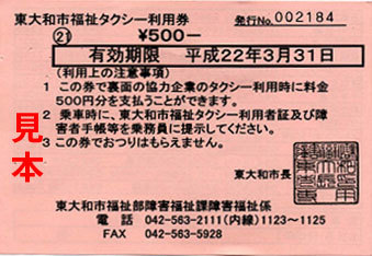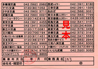東大和市福祉タクシー利用券 |