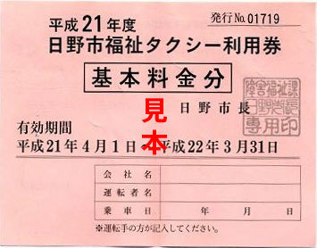 日野市福祉タクシー利用券 |