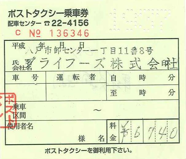 ポストタクシー乗車券 |