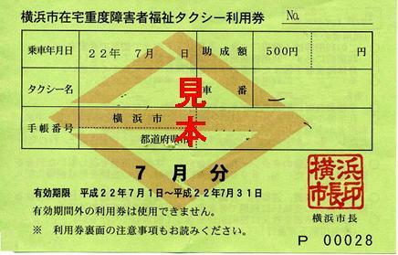 横浜市在宅重度障碍者福祉タクシー利用券 |